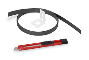 Benötigtes Verpackungsmaterial: Verzurrband, Verschlussschnallen, Kleinmesser.