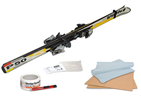 Umwickeln Sie die Ski vollständig mit dicker Kartonage. Sollten Sie einen gebrauchten Karton wiederverwenden, entfernen Sie bitte alte Paketscheine. Fixieren Sie die Kartonage so gut mit Packband, dass der Karton beim Versand nicht verrutschen oder sich lösen kann. Bringen Sie den Versandschein an.